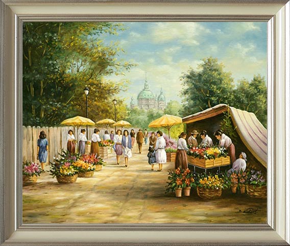 Relevante Suchbegriffe zum Gemälde "Blumenmarkt": Blumenstraße Blumenverkauf, Bilder Blumenmarktgemälde, Kunstmaler Blumenbilder in Öl, Künstler Blumenmalerei.