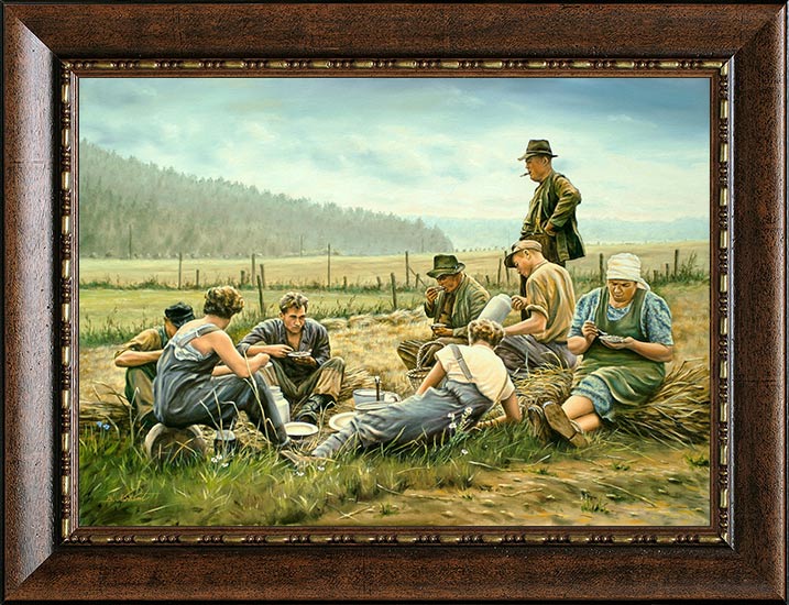 Feldarbeit / Erntevesper / Feldfrühstück - Copyright by Kunstmaler / Heimatmaler B. Niebert