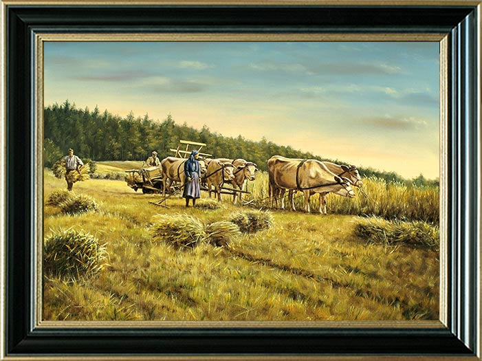 Ölbild/Erntebild mit Kuhgespann - Copyright by Kunstmaler / Heimatmaler B. Niebert