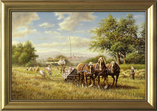 Relevante Schlagwörter zur Getreidernte mit Selbstbinder und Pferden: Ernte, Erntebild, Erntebilder, Erntegemälde, Erntegemaelde, Ernteölbild, Ernteoelbild, Ernteölbilder, Ernteoelbilder, Selbstbinder, Binder, Getreideernte, Haferernte, Kornernte, Pferd, Pferde, Pferdegespann, Bild, Bilder, Ölbild, Oelbild, Oelbilder, Ölbilder, Ölgemälde, Gemälde