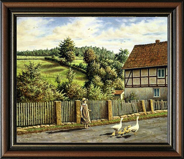 Relevante Schlagwörter zur Gemäldeausstellung Landleben: Auf dem Dorf, Dorfstrasse, Dorfleben, Gänsehüten, Gänseliesel, Hüten, Gänse Gans, Gänserich, Ganser, Ganterich, Ganter, die junge Gans oder Gänseküken nennt man auch Gänsel, Ginsel oder Gössel bei der Hausgans. Küken, Gänsefedern, Gänsekiel, Gänseessen, Gänsebraten, Gemälde, Bild, Bilder, Ölgemälde, Ölbilder, Ölbild.