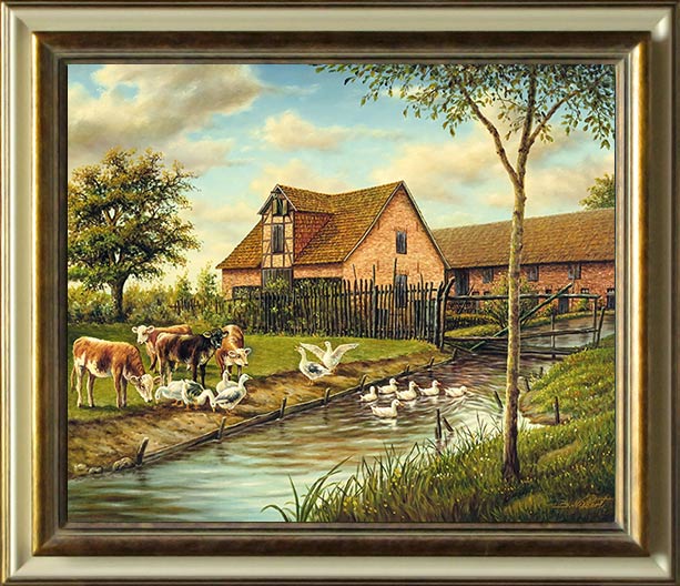 Relevante Schlagwörter zur Gemäldeausstellung Landleben, ländliche Motive: gemalte Rinder, Gänse, Enten am Mühlgraben hinter der Mühle, Wassermühle. Gemalte Bilder, Mühlenbilder  Zeichnungen Ölbilder, Ölgemälde. Gemälde in Öl, Vieh und Federvieh auf der Weide, alte Ansichten.