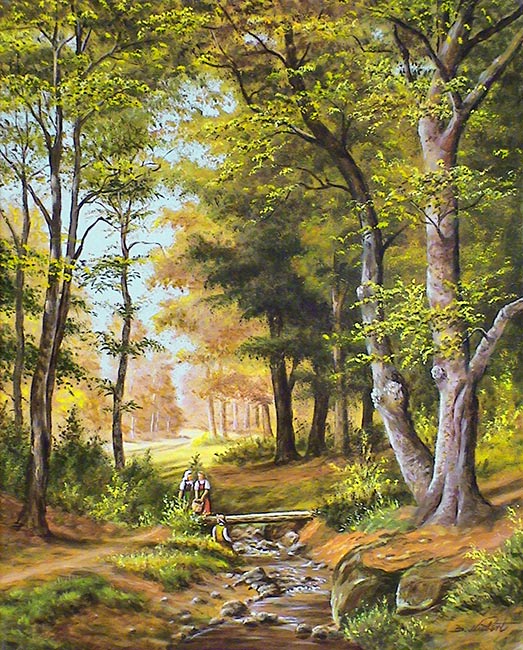 den Themen: Wald, Waldbild, Waldbilder, Waldgemälde, Bach, Bachlauf,