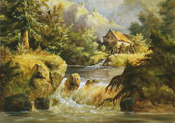 Bergbild Gebirgsgemälde Mühle am Bach - Copyright by Kunstmaler B. Niebert