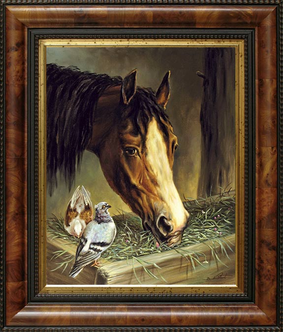 Relevante Suchbegriffe zum Pferdegemälde mit Tauben auf der Futtergrippe / Futtertrog: Gemalte Pferdebilder, Pferdezeichnung, Pferdetrog, Heutrog aus Holz, Futterraufe, Pferderaufe, gemalter Pferdekopf / Pferdeportrait im Pferdestall, Gemälde Bilder, gemaltes Pferdebild, Pferdegemälde