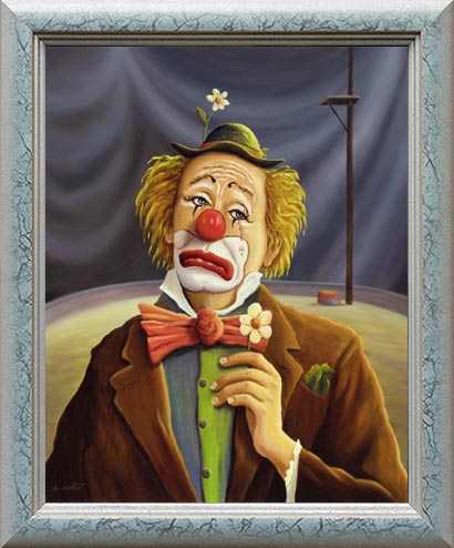 Trauriger Clown, Cirkus, Cirkusclown, Clowngemälde, Clownbild, Clownbilder, Clownölbild, Clowngesicht, Manege, Bild, Bilder, Ölbild, Ölbilder, Ölgemälde, Gemälde