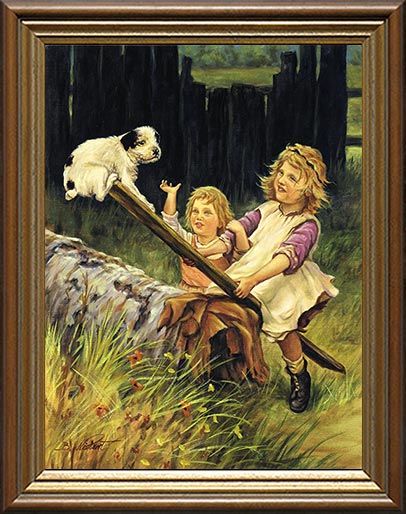 Gemalte Kinderbilder mit Tieren / Kindergemälde - Copyright by Kunstmaler / Nostalgiemaler Burkhard Niebert