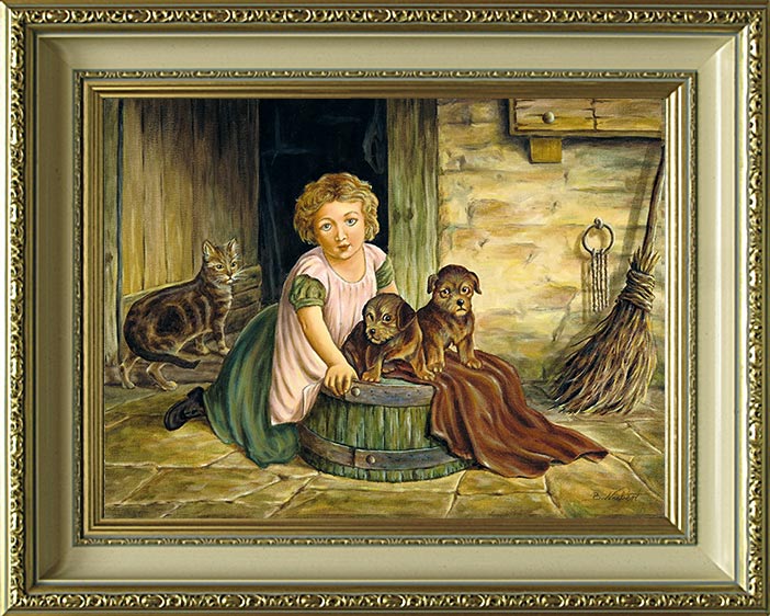 Gemälde zu den Themen: Kunstmaler Gemalte Hunde, Hundewelpen, Hundebild, Hundebilder, Hundezucht, Hundefreund, Hundegemälde, Kind, Kinder, Kindergemälde, Mädchen, Mädchengemälde Ländlich, Tier Tiere, Mensch Menschen, Dorfleben, Katze Katzen Katzenbild, Katzenbilder Katzengemälde.