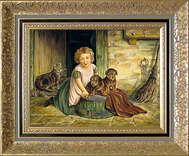 gemalte Bilder Tiere und Menschen in der Kunst auf Ölgemälden, Kinder Haustiere,