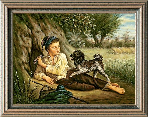 Hüteknabe mit bettelndem Hund  Ölgemälde 30x40 cm
