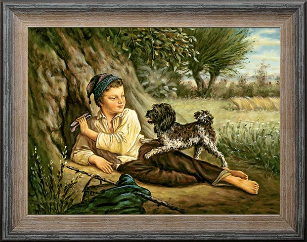 Hüteknabe mit bettelndem Hund  Ölgemälde 30x40 cm