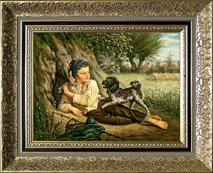Hüteknabe mit bettelndem Hund  Ölgemälde 30x40 cm