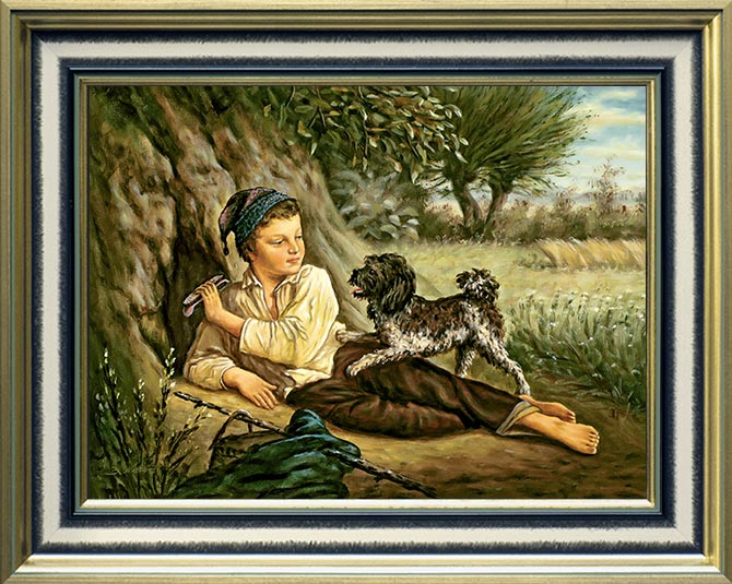 Hüteknabe mit bettelndem Hund  Ölgemälde 30x40 cm