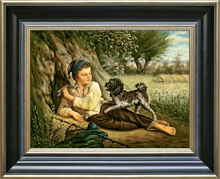 Hüteknabe mit bettelndem Hund  Ölgemälde 30x40 cm