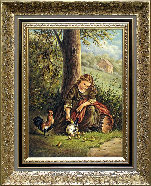 Hahn, Henne / Glucke und Küken Copyright by Kunstmaler / Nostalgiemaler B. Niebert