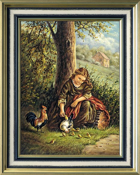Hahn, Henne / Glucke und Küken Copyright by Kunstmaler / Nostalgiemaler B. Niebert